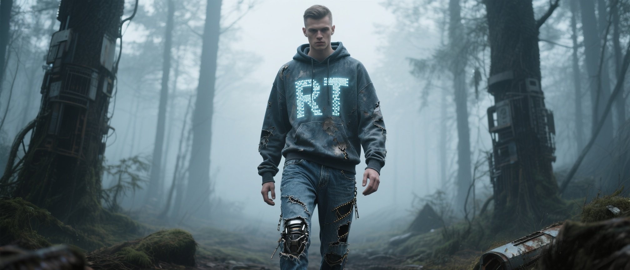 In a world shaken by uncertainty, Ravitaillement chooses not to chase fleeting trends. We don't create trends — we airdrop romance into the apocalypse. This season draws inspiration from visions of a post-apocalyptic landscape, where tactical utility and emotional resilience intertwine. Layered structures, modular details, and protective technical fabrics form a new kind of armor — one that shields without hardening the spirit. Muted military tones meet soft light reflections, crafting garments that move between survival and tenderness. Born not for trends, but for resilience. Styled not for fleeting moments, but for enduring dreams. Ravitaillement FW24 is dedicated to those who still believe in beauty amidst the ruins.